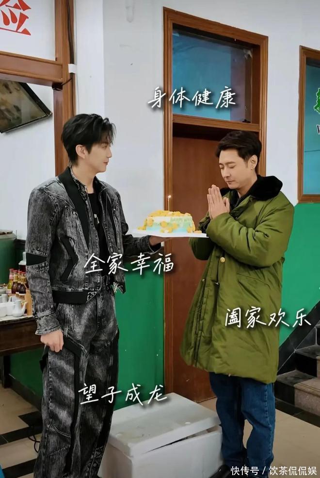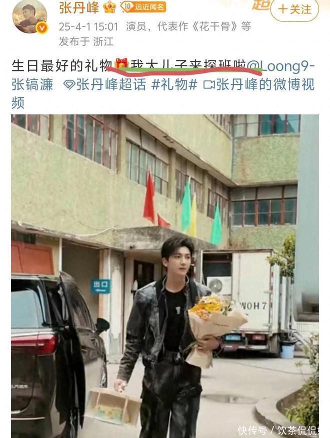 没想到还在片场的他,竟然收到了来自继子张镐濂亲自探班,带了花束和蛋糕,为他庆生。